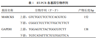 兔抗 MARCKS(20661-1-Ap,Proteintech),兔 抗 p-MARCKS(11992,CST),山羊抗兔 IgG(H+L) HRP(天德悅 S004),山羊抗小鼠 IgG(H+L)HRP (天德悅 S001),GAPDH 鼠單抗(天德悅 TDY042), 超純RNA提取試劑盒(CWbio.Co.Ltd,Cat#CW0581), HiFi-MMLV cDNA 第一鏈合成試劑盒(CWbio.Co.Ltd,Cat#CW0744)。渦旋振蕩儀(其林貝爾 QL-902), 離心機(Eppendorf Centrifuge 5415D),分光光度計 (Therno Scientific,NANODROP 2000),熒光定量 PCR 儀(Applied Biosystems,ABI7500),Fresco 低 溫冷凍離心機( Thermo ), MultiSkan3 酶標儀 (Thermo),Mini P-4 電泳槽(Cavoy)。